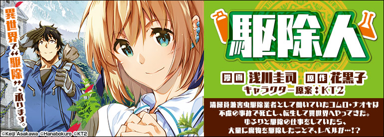 清掃業兼害虫駆除業者として働いていた30代男性・コムロナオキが、異世界で現代知識を活かしながら“駆除業”として生きる物語が描かれています。